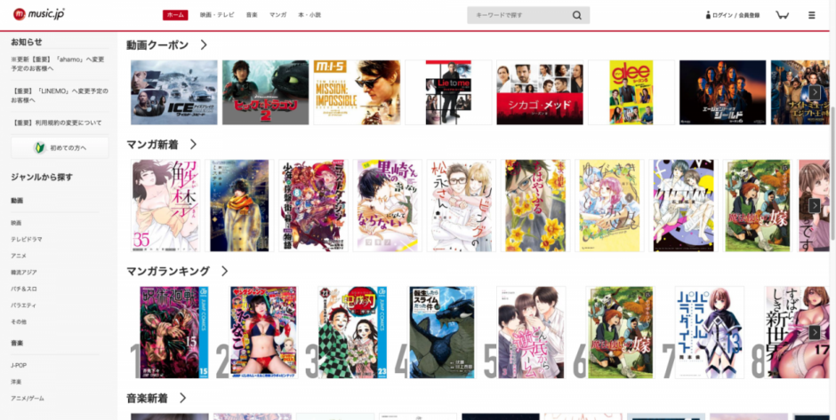 music.jpは、音楽もマンガも映画もお得に楽しめるVODサービスです。