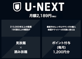 U-NEXTの月額プラン(2,189円)に登録すると、初回登録時に600ポイントが付与され、2か月目以降は毎月1,200ポイント付与されます。